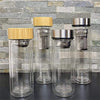 Material: 100% Borosilikatglas mit Edelstahldeckel/ Bambusdeckel (Innenseite aus Edelstahl) Maße: a) Volumen 350 ml: Durchmesser: 7 cm, Höhe: 19 cm, Nettogewicht: 404 g. b) Volumen 450 ml: Durchmesser: 7 cm, Höhe: 23 cm Nettogewicht: 520 g.